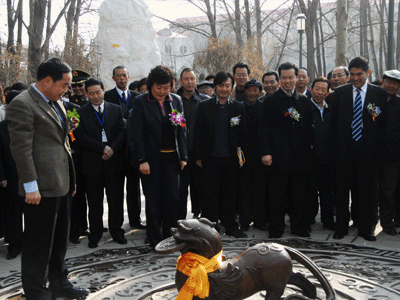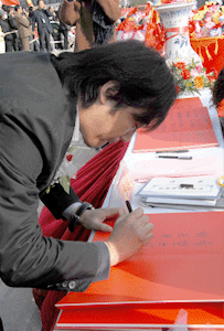 北京首商城市规划研究院设计师曹伟在西宁麒麟湾开园签名留念