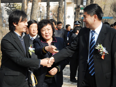 北京首商城市规划研究院设计师曹伟与河北建设厅领导合影